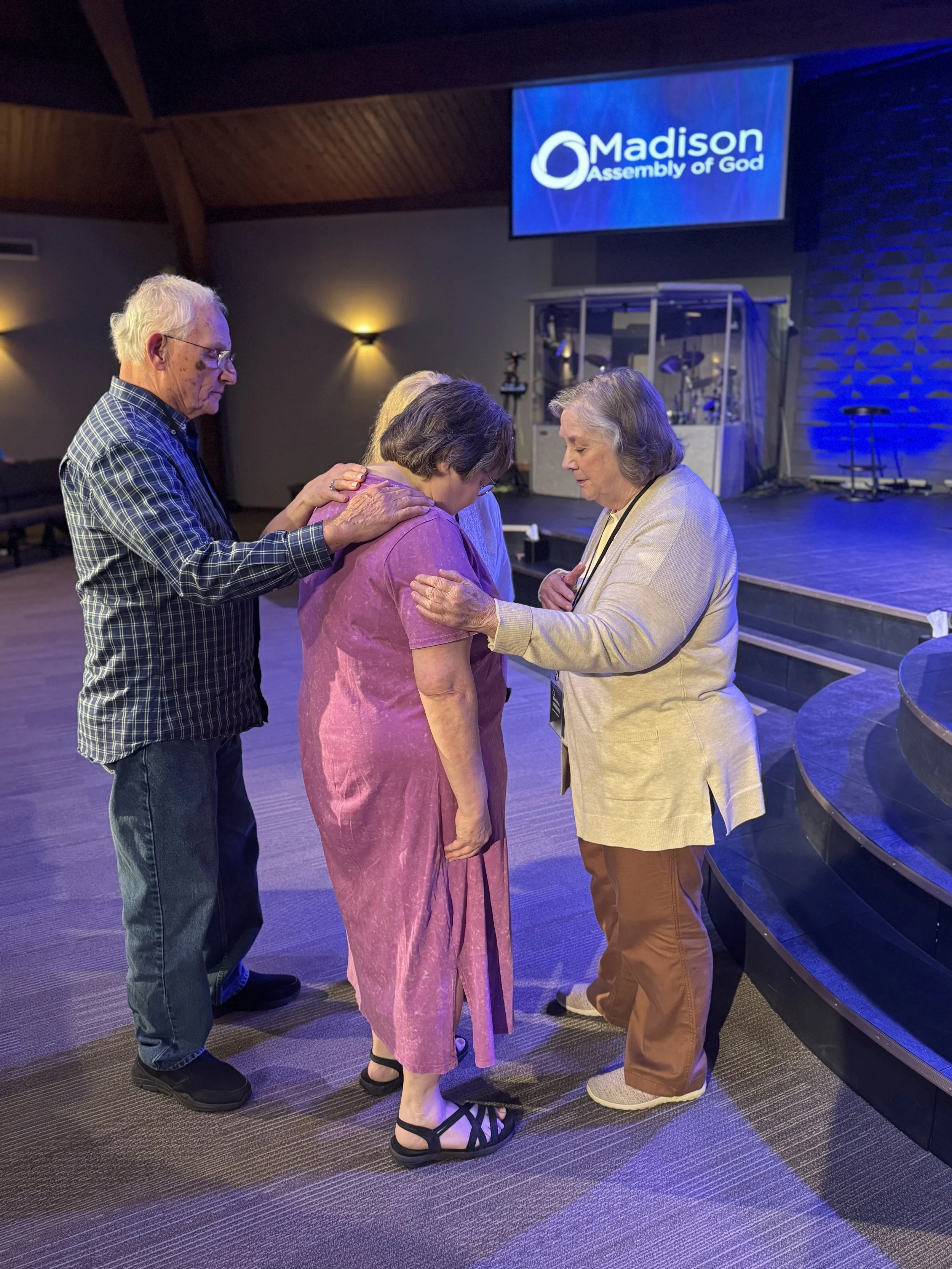 Our Prayer Team is a group who regularly covers our church, city, nation, and world in prayer. They meet every Wednesday morning at 10:00am in the Worship Center for one hour of committed prayer, as well as at 9:00am each Sunday before service. The Prayer Team also helps facilitate our times at the altar during services. We believe that when the Lord said, “My house will be a house of PRAYER”, He meant it!